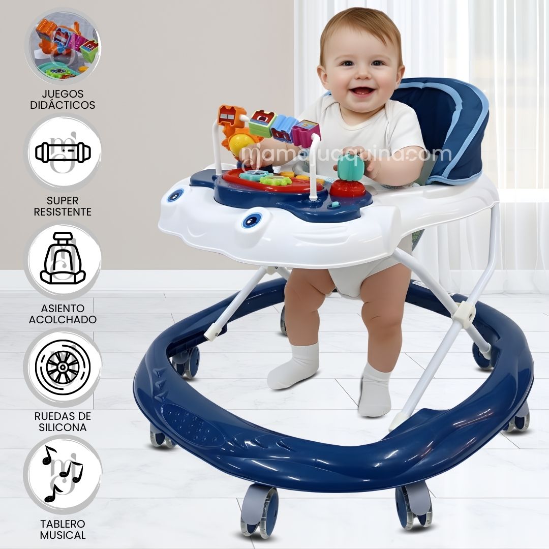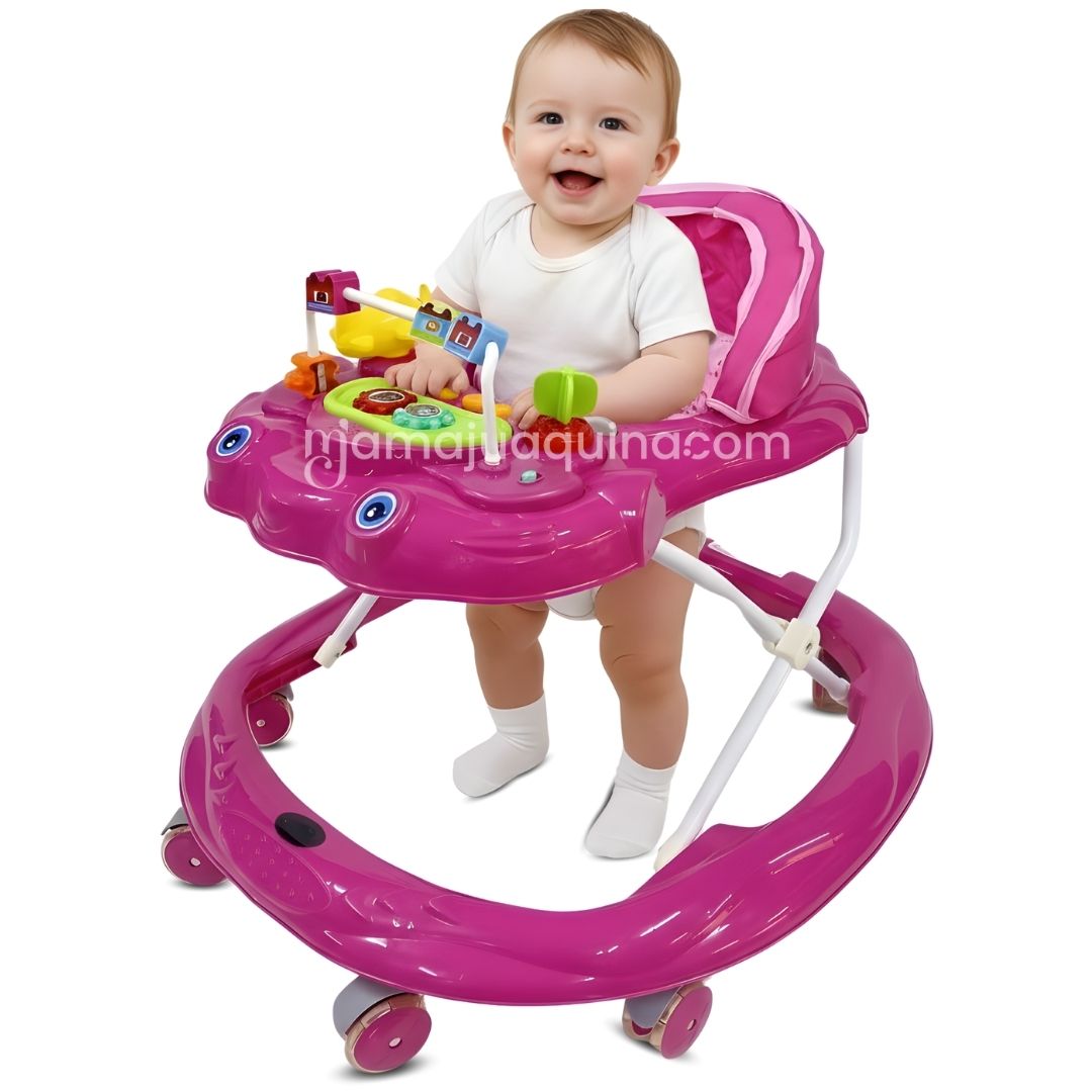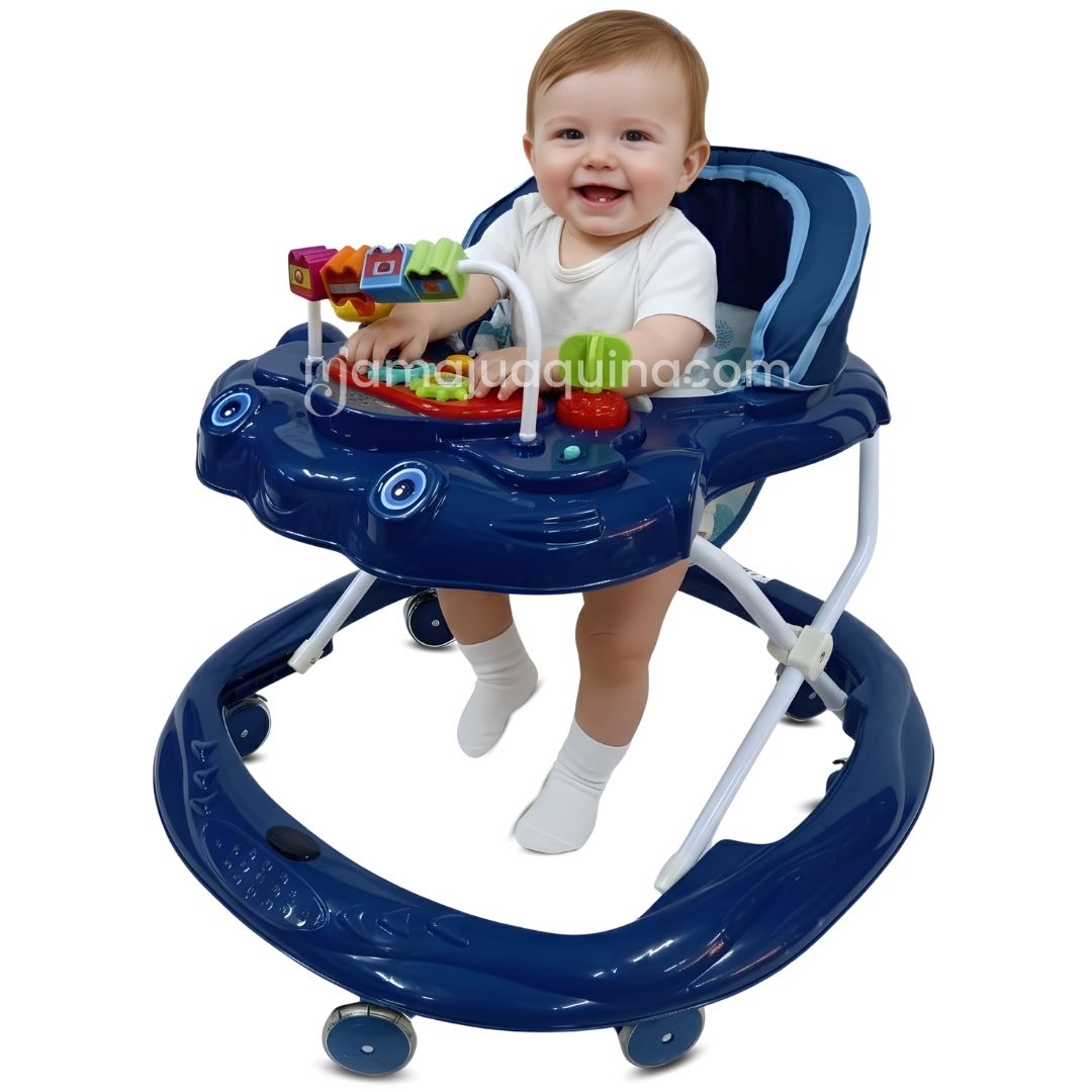 Este andador combina seguridad, funcionalidad y entretenimiento en un solo producto. Su base amplia y estructura estable proporciona el soporte necesario para que tu bebé dé sus primeros pasos sin preocupaciones. Además, está equipado con ruedas diseñadas para moverse suavemente en distintas superficies, ofreciendo una experiencia cómoda y segura.