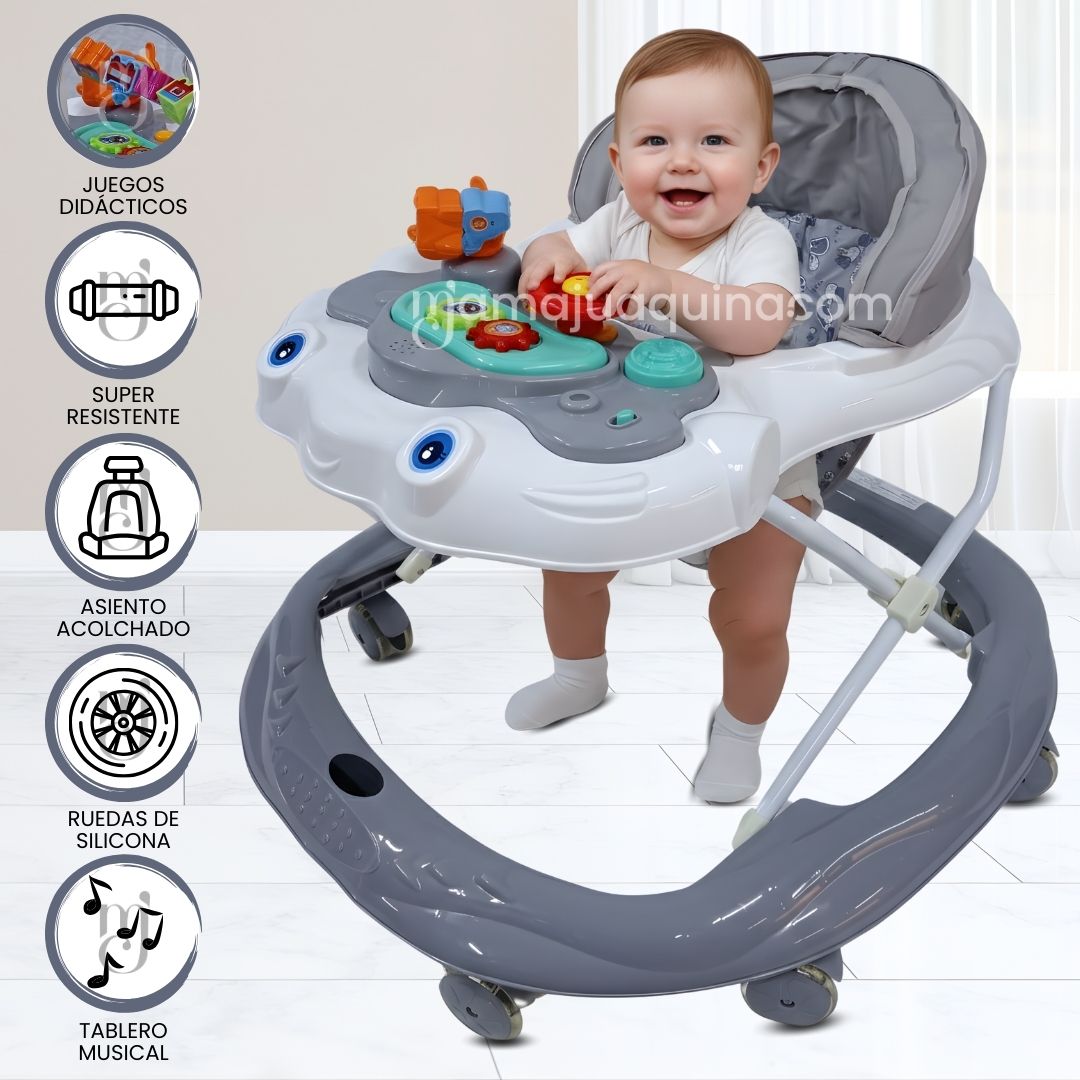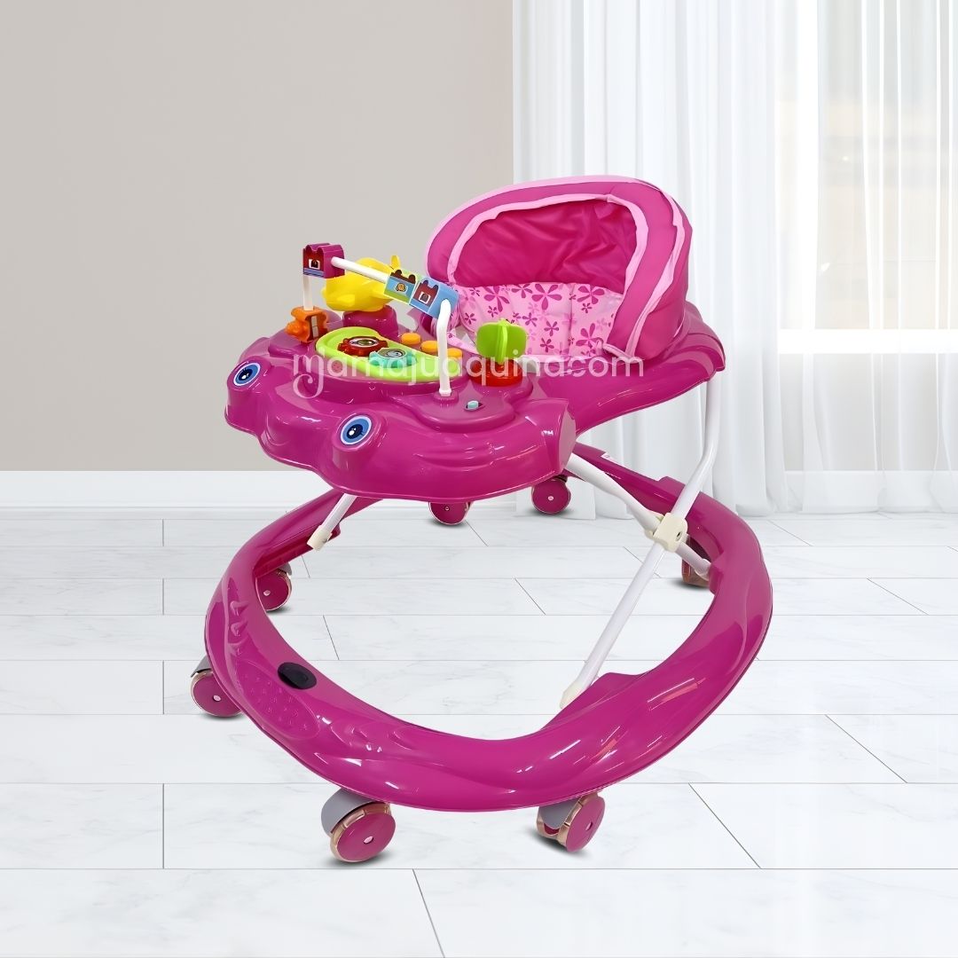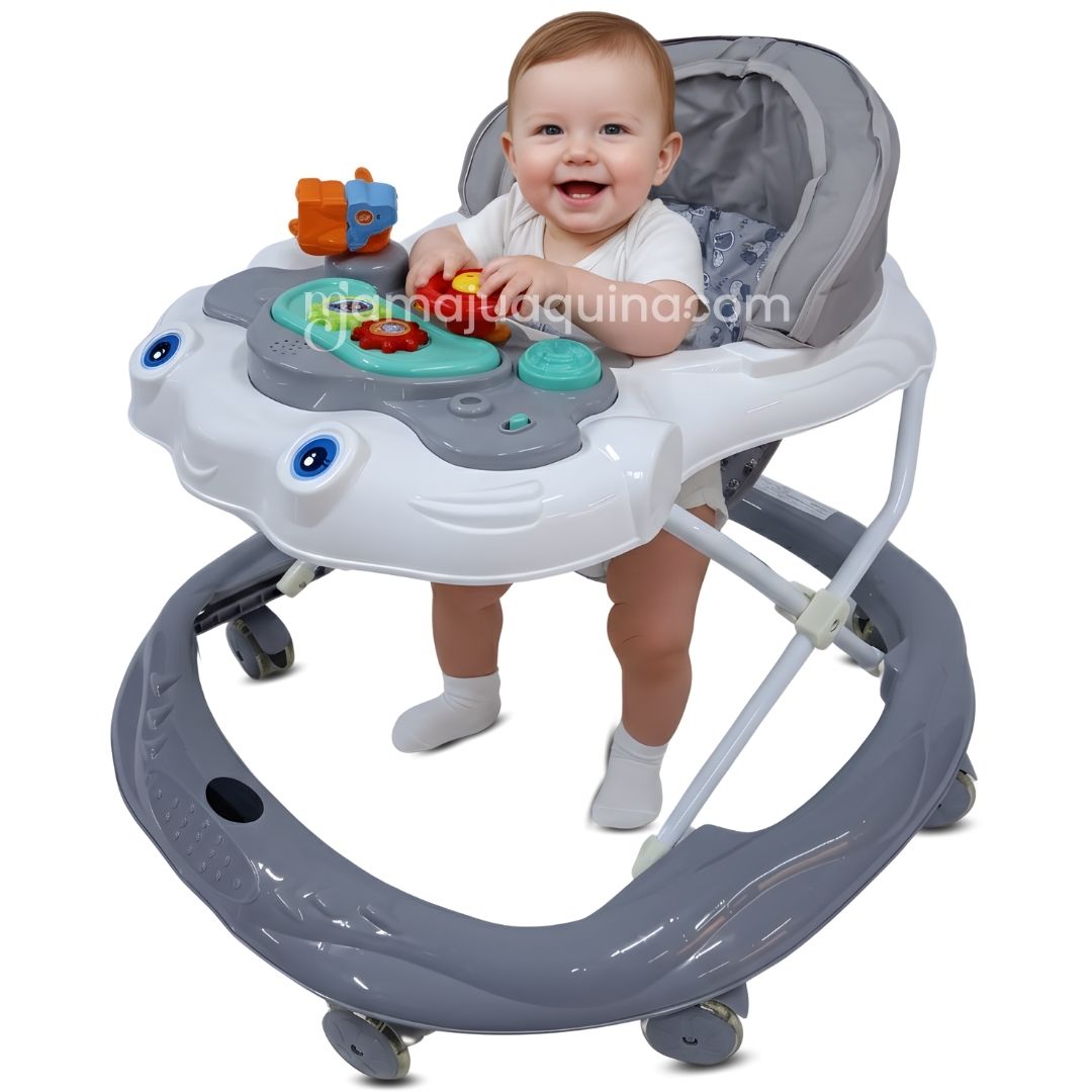 Este andador combina seguridad, funcionalidad y entretenimiento en un solo producto. Su base amplia y estructura estable proporciona el soporte necesario para que tu bebé dé sus primeros pasos sin preocupaciones. Además, está equipado con ruedas diseñadas para moverse suavemente en distintas superficies, ofreciendo una experiencia cómoda y segura.