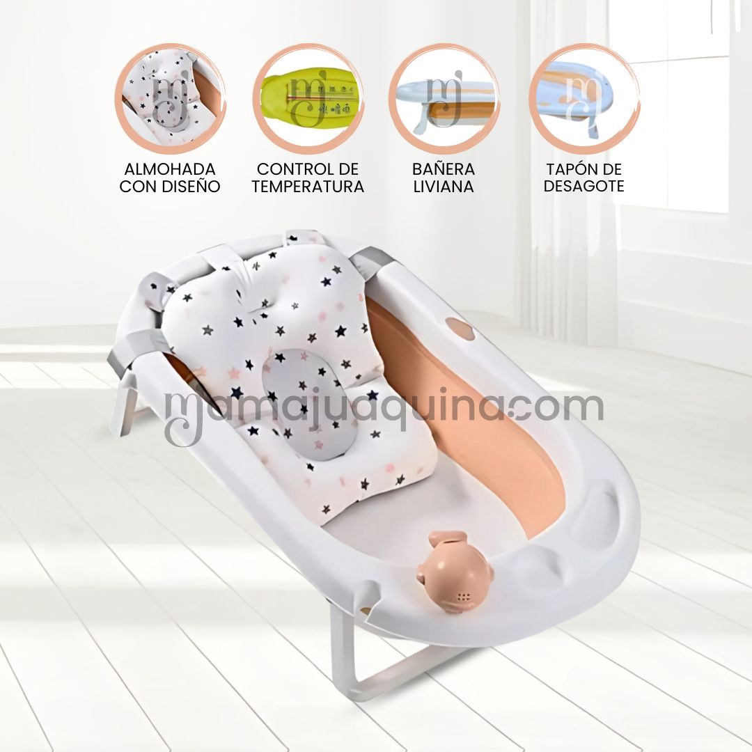 • Cojín de baño incluido: Aporta suavidad extra para la cabeza y el cuerpo, ayudando a mantener al bebé cómodo y relajado.