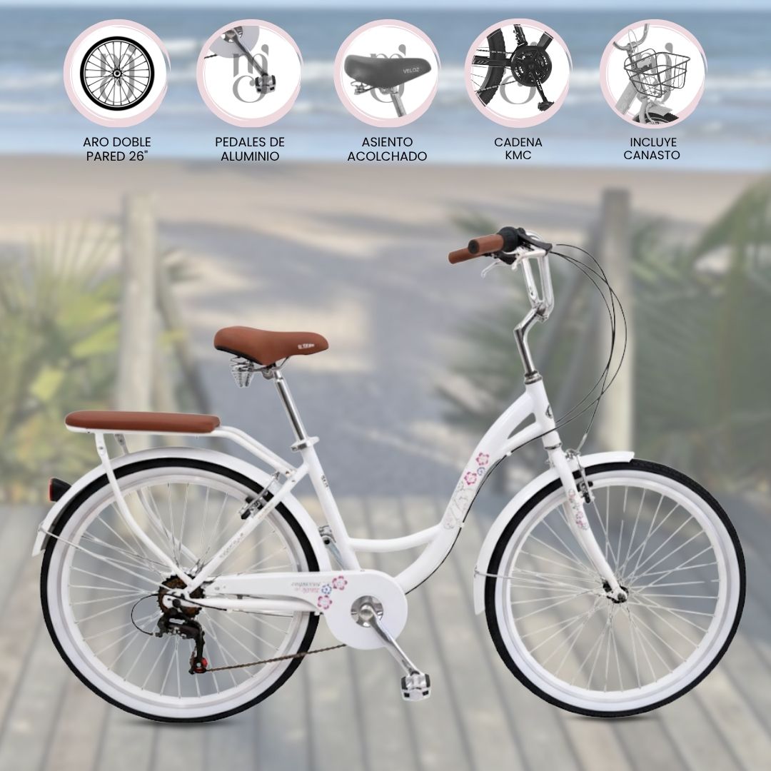 Bicicleta Campera Floral Campy Aro 26 – Elegancia, comodidad y rendimiento en cada paseo