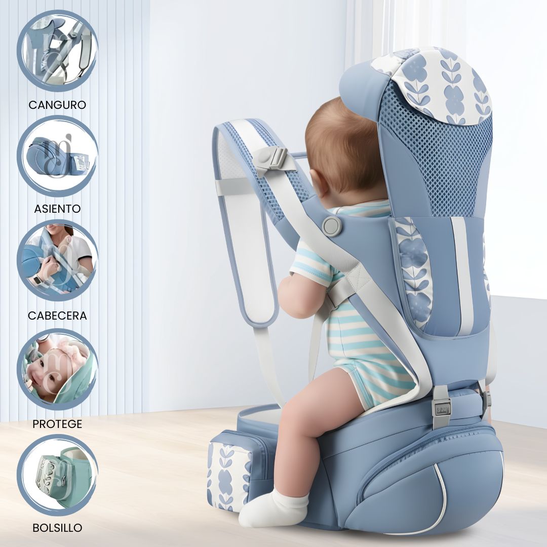 • Cintas acolchadas ajustables: distribuyen el peso de manera uniforme, brindando comodidad tanto al bebé como al adulto.