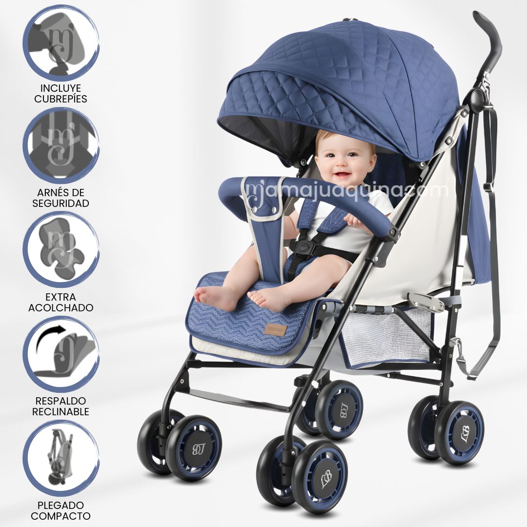 Coche Bastón «Polonia II» Imagina un coche de bastón ligero y compacto que se pliega con un solo movimiento, facilitando su transporte y almacenamiento en cualquier lugar. Este coche es perfecto para padres modernos y dinámicos que buscan soluciones eficientes sin comprometer el confort de su bebé.