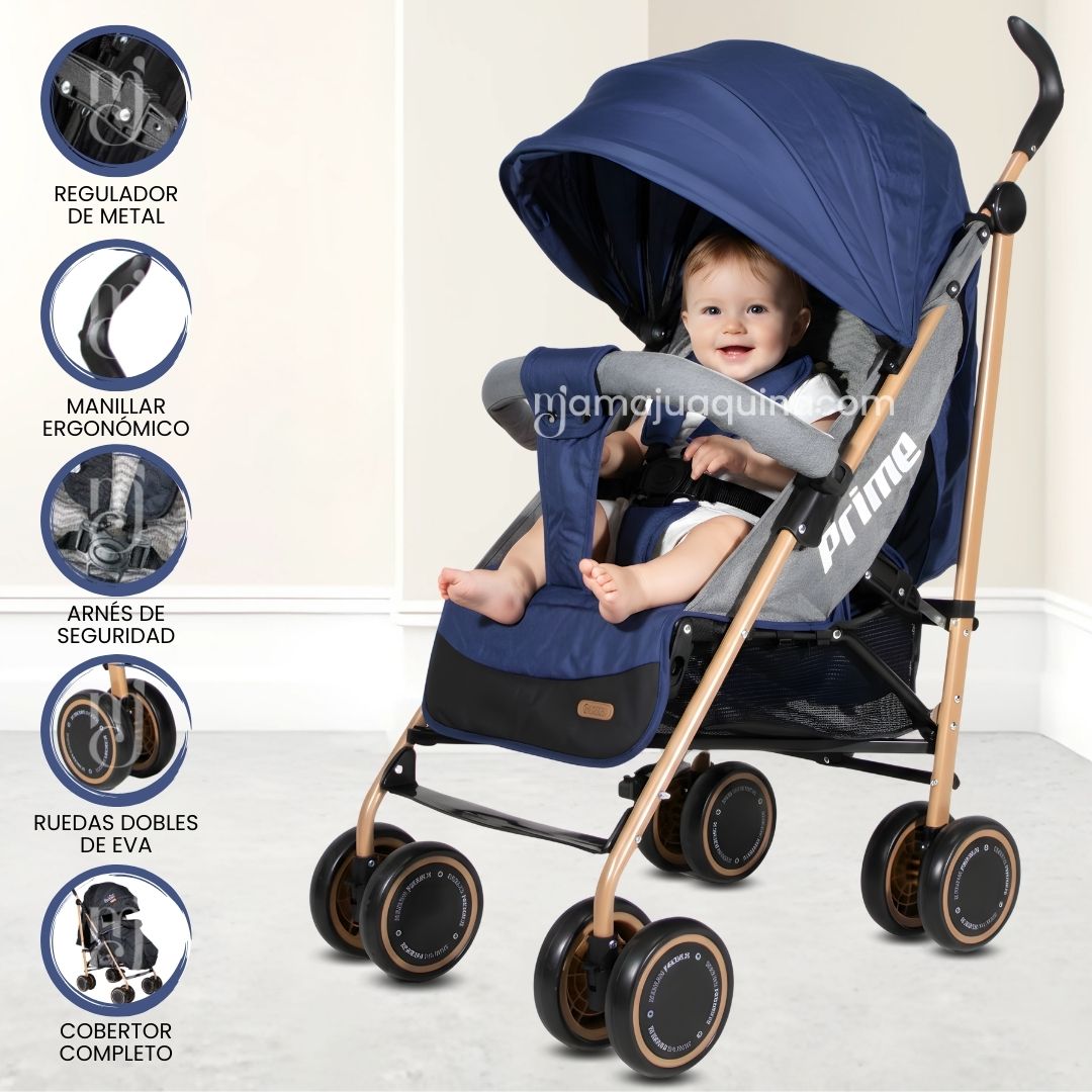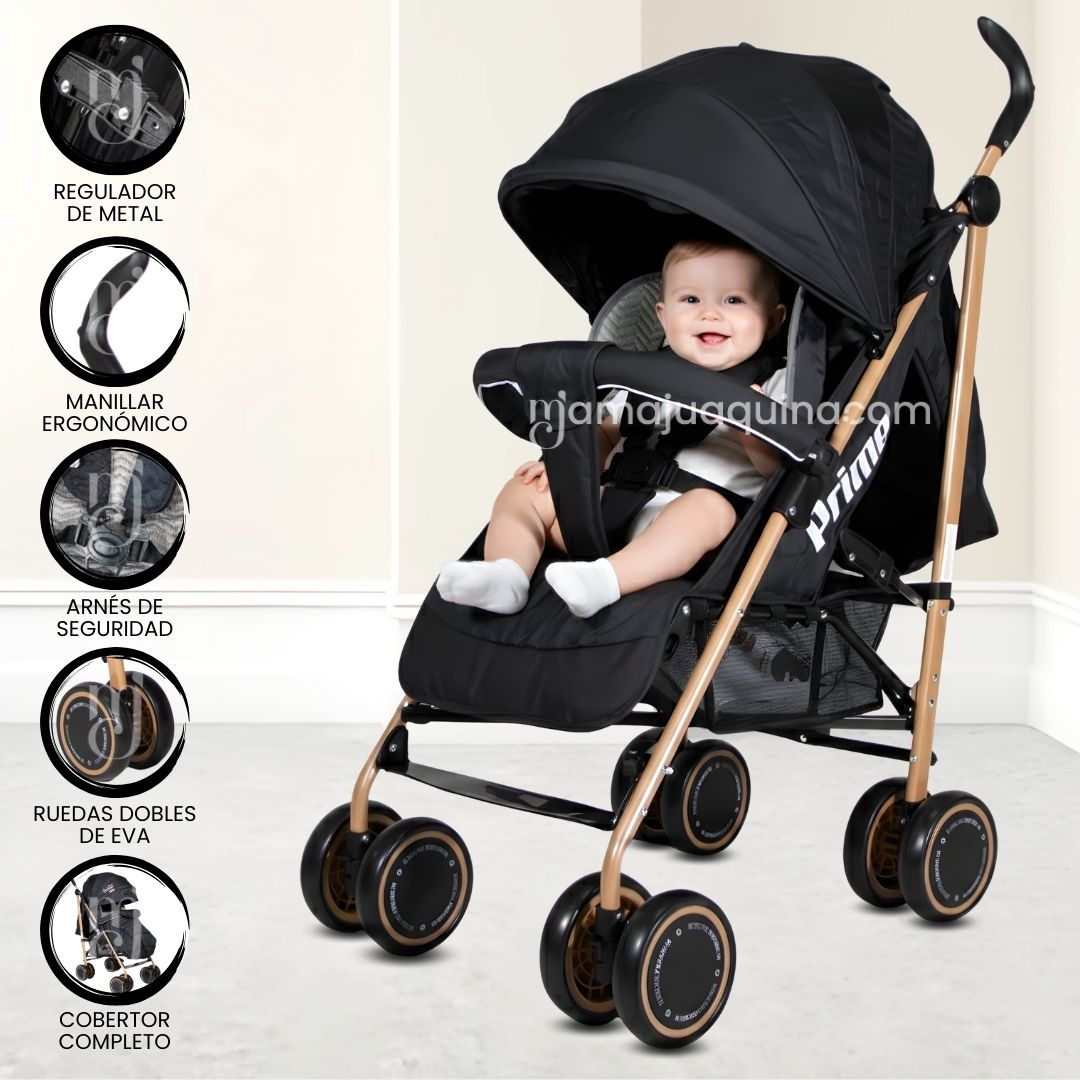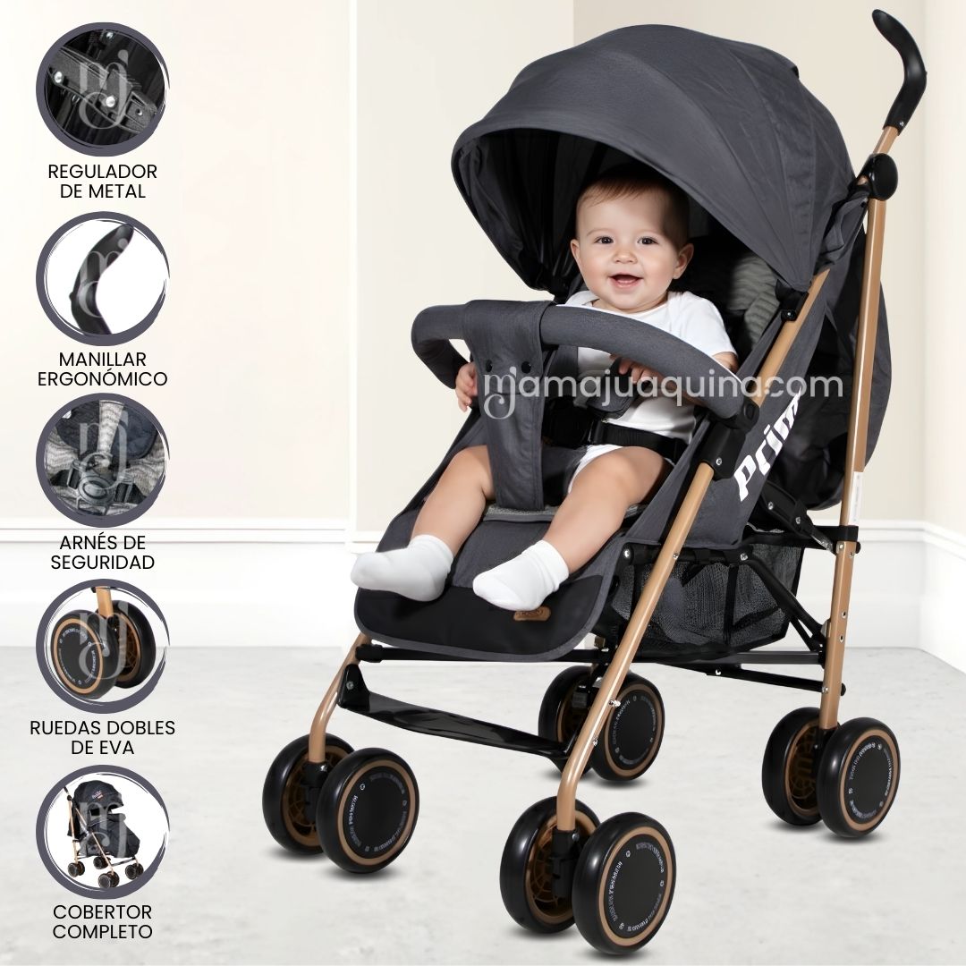 Coche Bastón«PRIME PLUS»  ¿Estás listo para darle a tu pequeño explorador la aventura de su vida mientras tú disfrutas del viaje? ¡El cochecito de bebé “Prime Plus” está aquí para convertir cada paseo en una experiencia emocionante y llena de alegría!