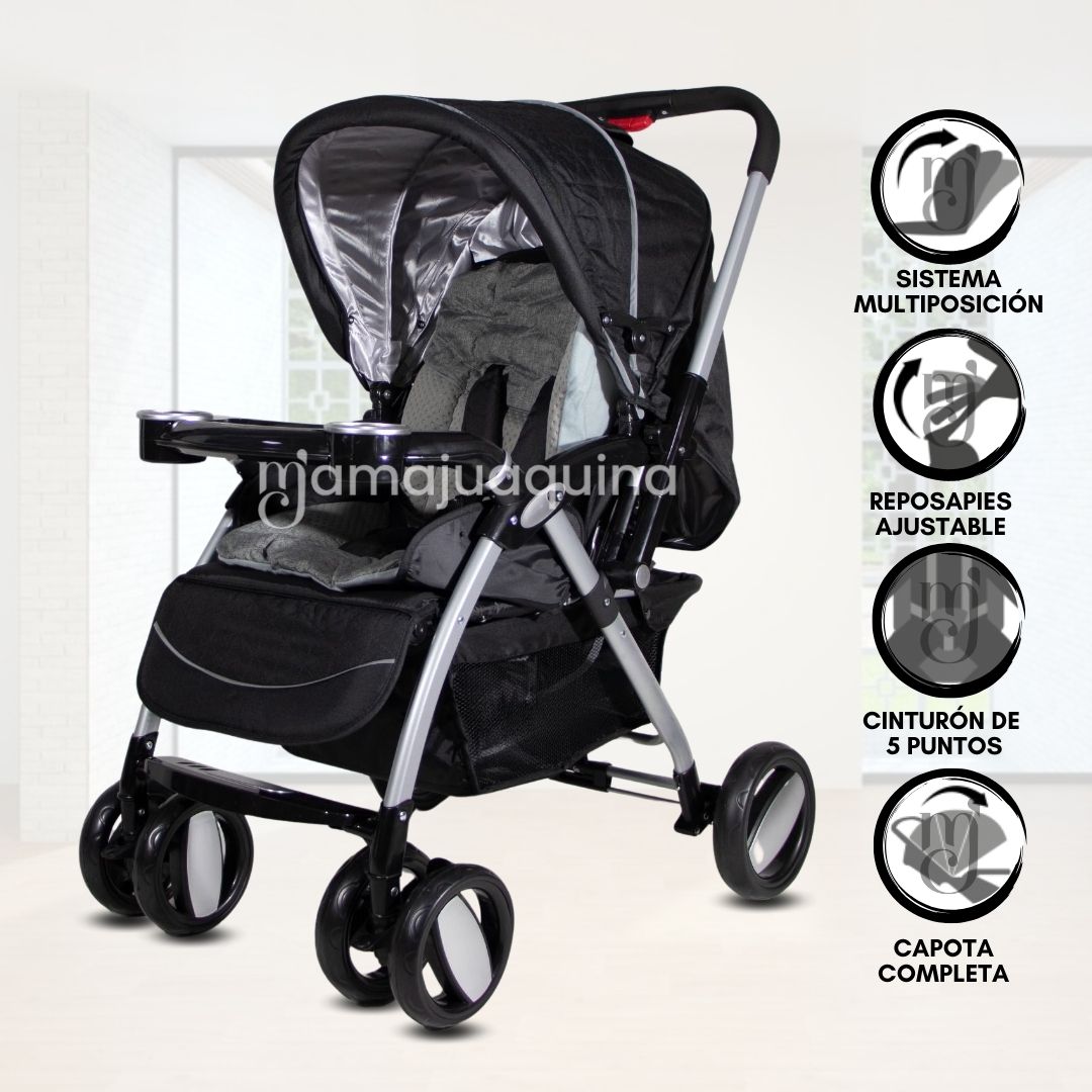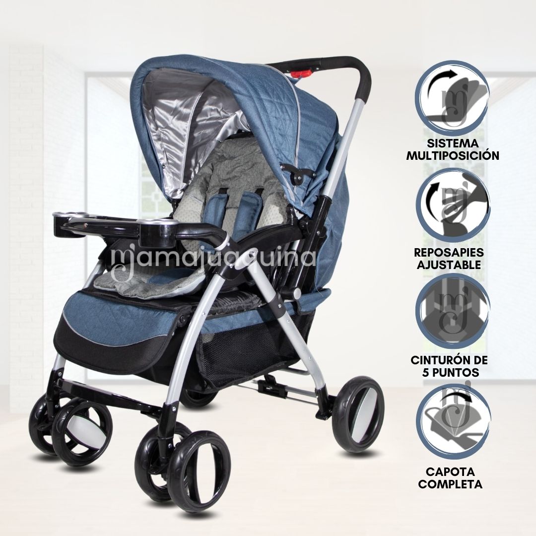 • Bandeja con posavaso : Perfecta para colocar el biberón o un snack durante los paseos.