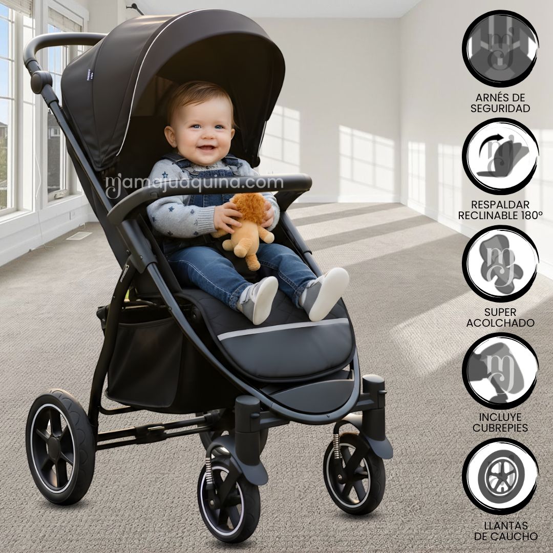 • Arnés de seguridad: mantiene a tu bebé bien sujeto, brindándote tranquilidad en cada recorrido.