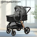 El protector UV protege al bebé de los rayos solares durante el paseo. La estructura reforzada brinda mayor resistencia y estabilidad. El arnés de seguridad asegura una sujeción firme. El mango reversible permite ajustar la orientación para mayor cercanía y control. El asiento reclinable facilita acomodar al bebé para su descanso. El cobertor de pies ofrece abrigo adicional en climas fríos. Finalmente, las llantas grandes permiten un desplazamiento más suave en distintos terrenos.