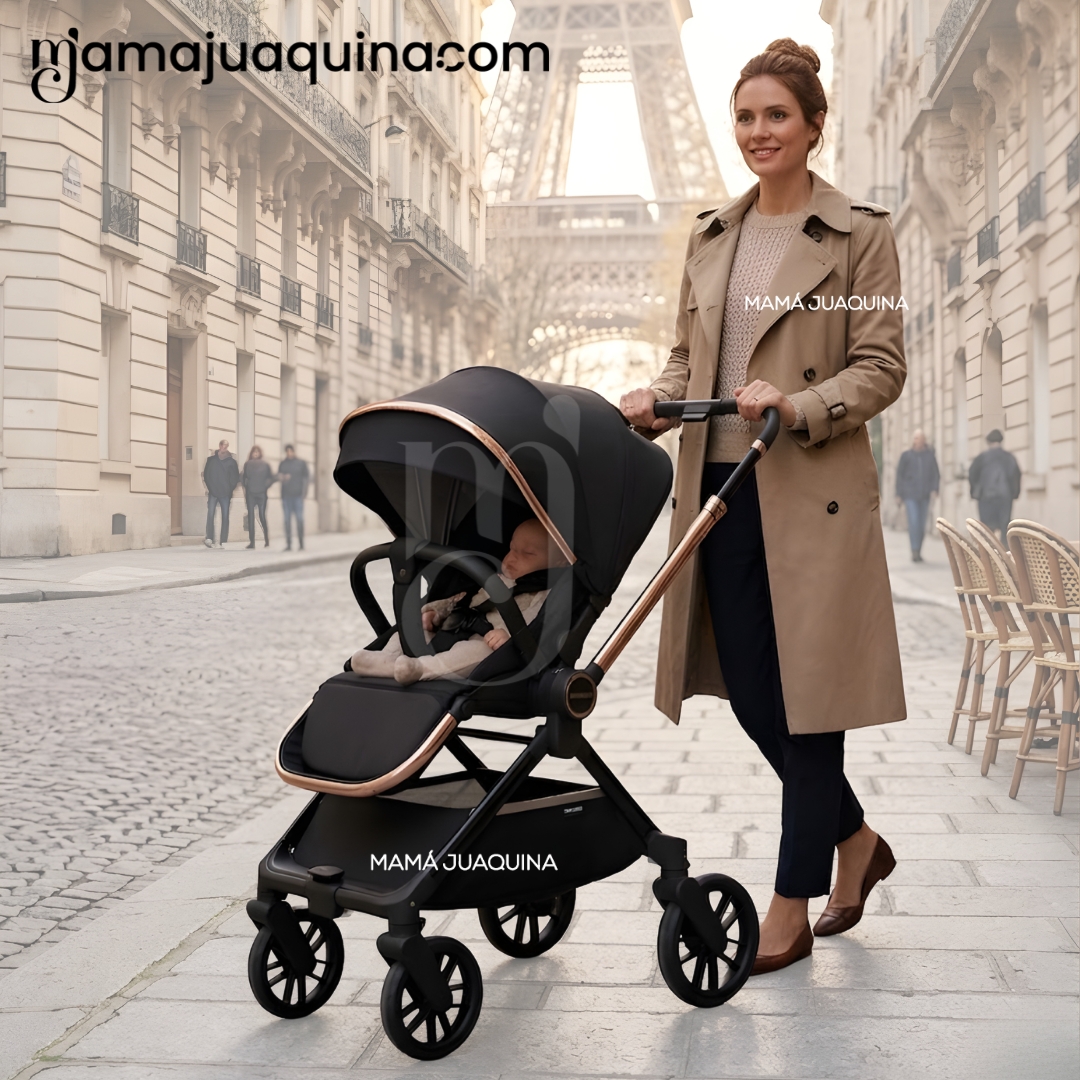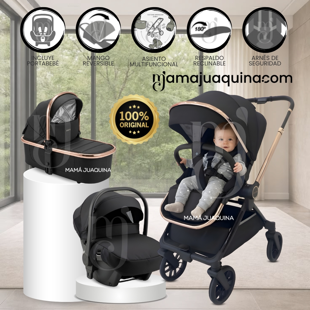 El mango reversible permite cambiar la orientación del coche para mayor control y cercanía con el bebé. El respaldo reclinable facilita ajustar la posición para su descanso. El arnés de seguridad garantiza una sujeción firme durante el paseo. El asiento multifuncional se adapta a distintas etapas del crecimiento, brindando mayor versatilidad. Finalmente, incluye portabebé, ideal para trasladar al bebé de manera práctica y segura.