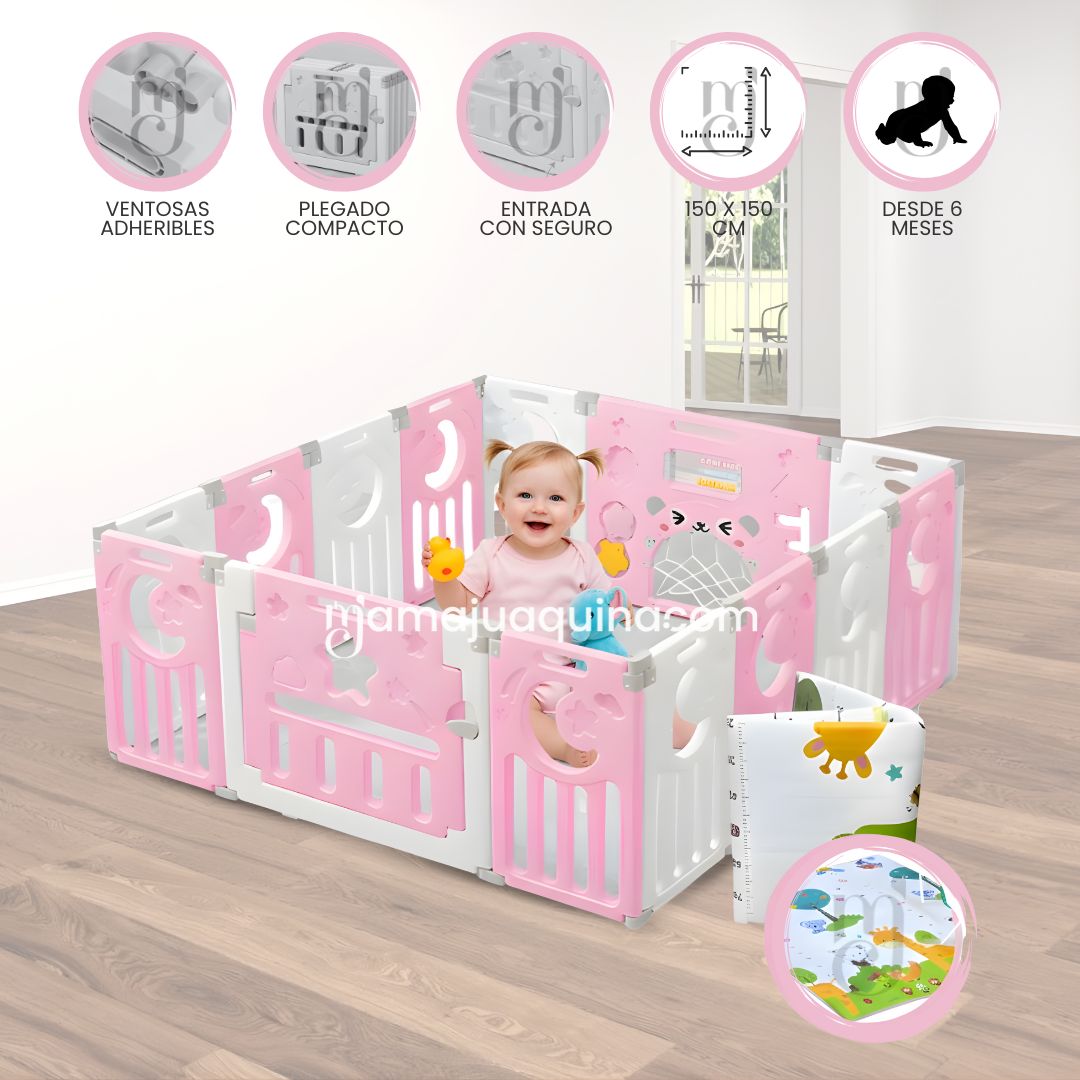 - Amplias dimensiones (150 x 150 cm y 63 cm de alto): ofrecen espacio suficiente para moverse y jugar con libertad.