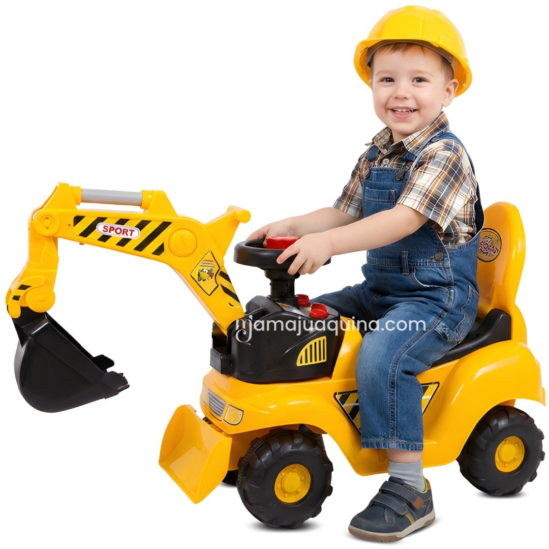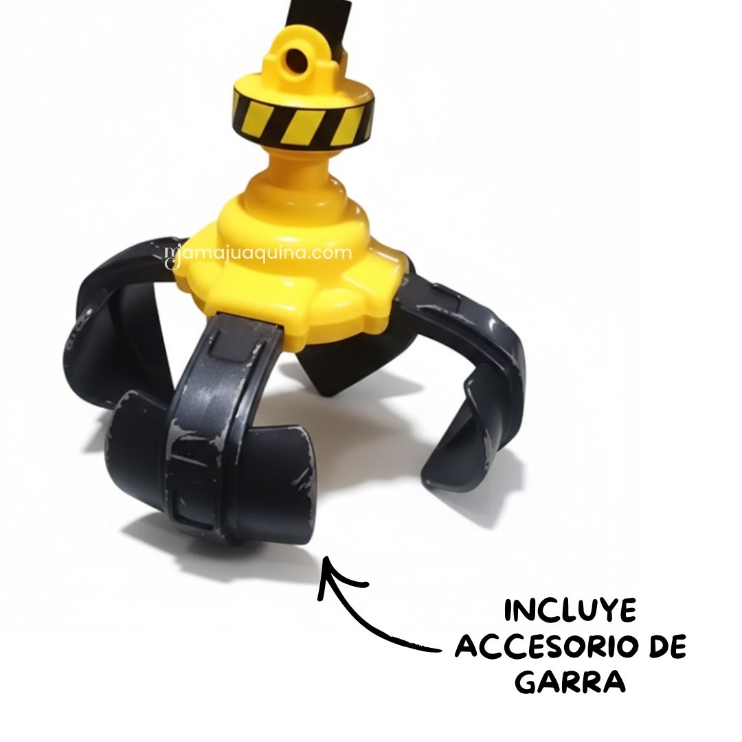 - Palanca excavadora intercambiable: Permite explorar distintas formas de juego, estimulando la imaginación y desarrollando la coordinación motora fina mientras manipula y construye.