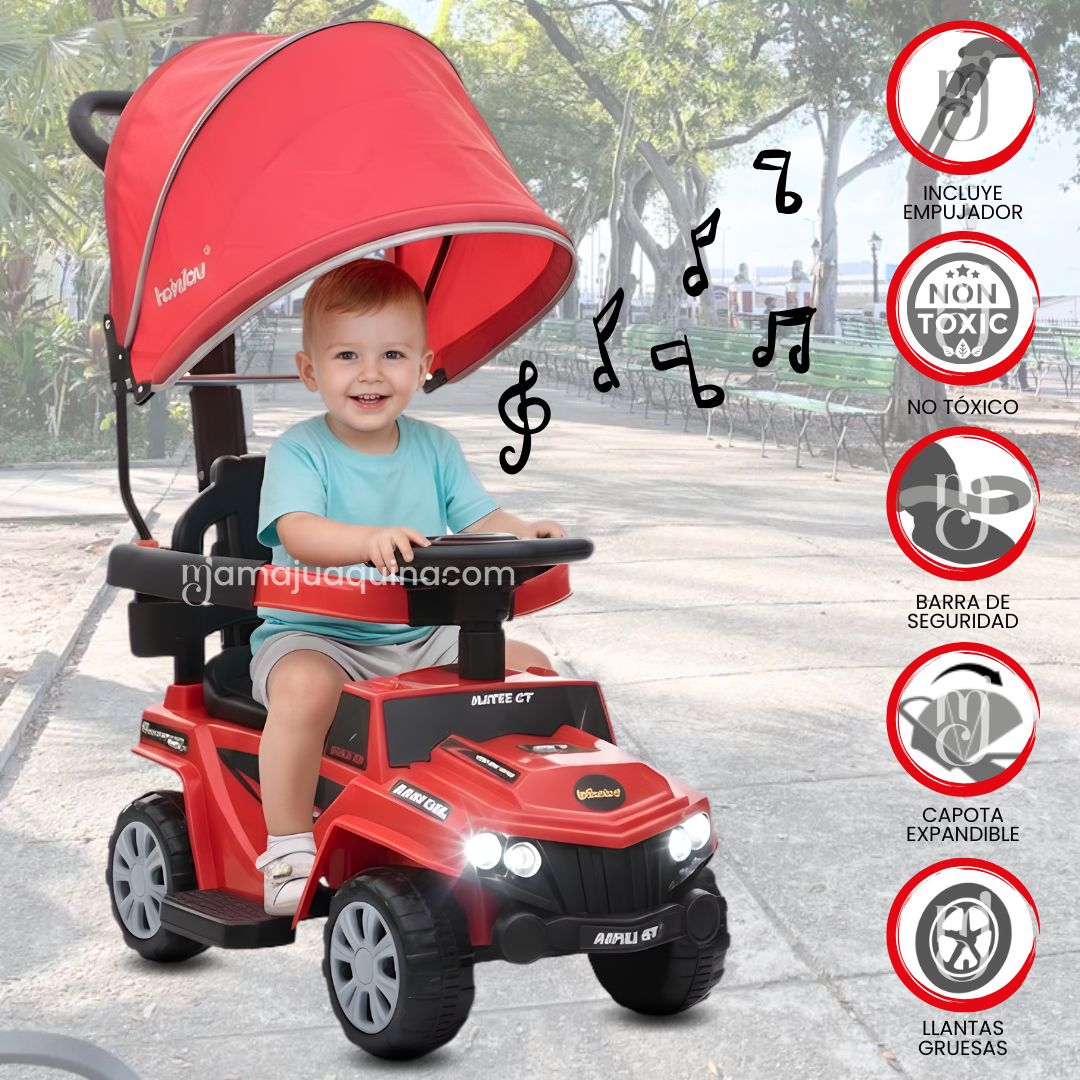 - Diseño tipo Mini Jeep: Atractivo y moderno, ideal para despertar su entusiasmo por el juego activo.