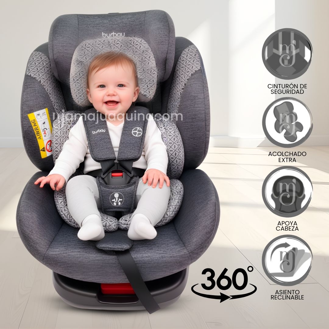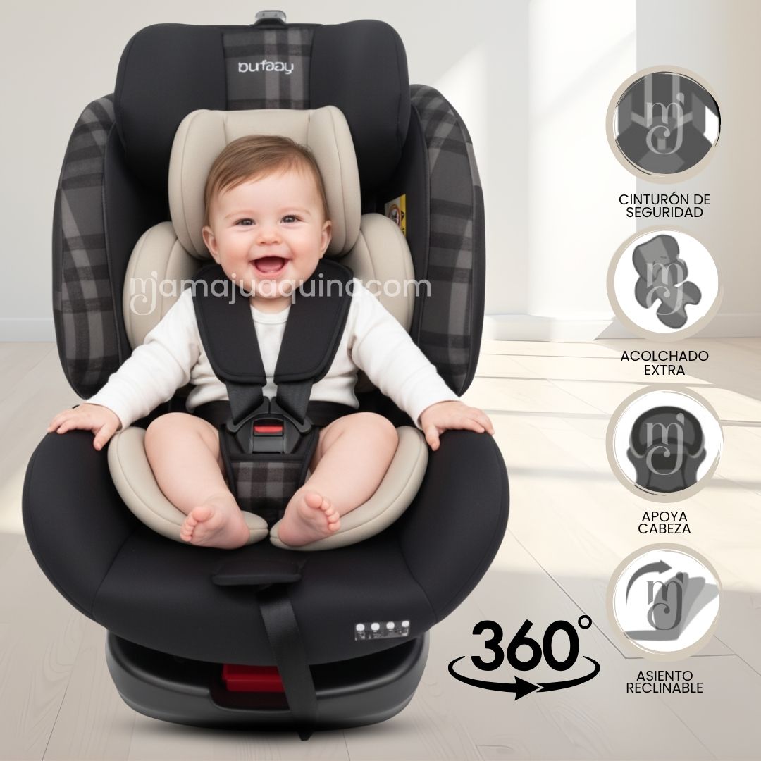 • Butaca giratoria 360°: facilita colocar o retirar al bebé sin esfuerzo.