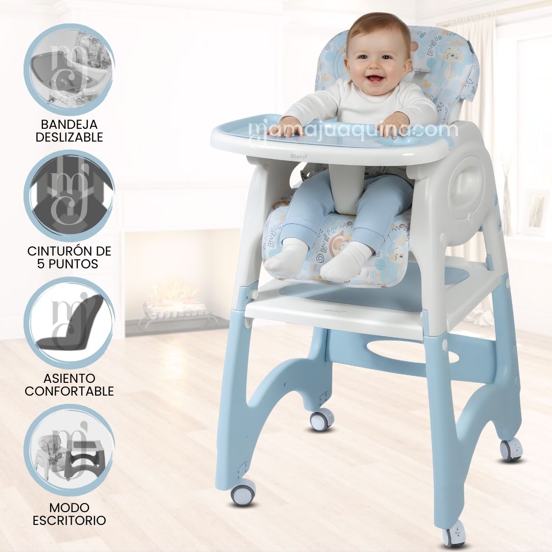 Con una bandeja ajustable y extraíble, facilita la alimentación y la limpieza, permitiéndote adaptarla según la necesidad de tu pequeño. Su altura regulable y su diseño plegable la hacen práctica y funcional para cualquier espacio, brindándote comodidad en cada uso.