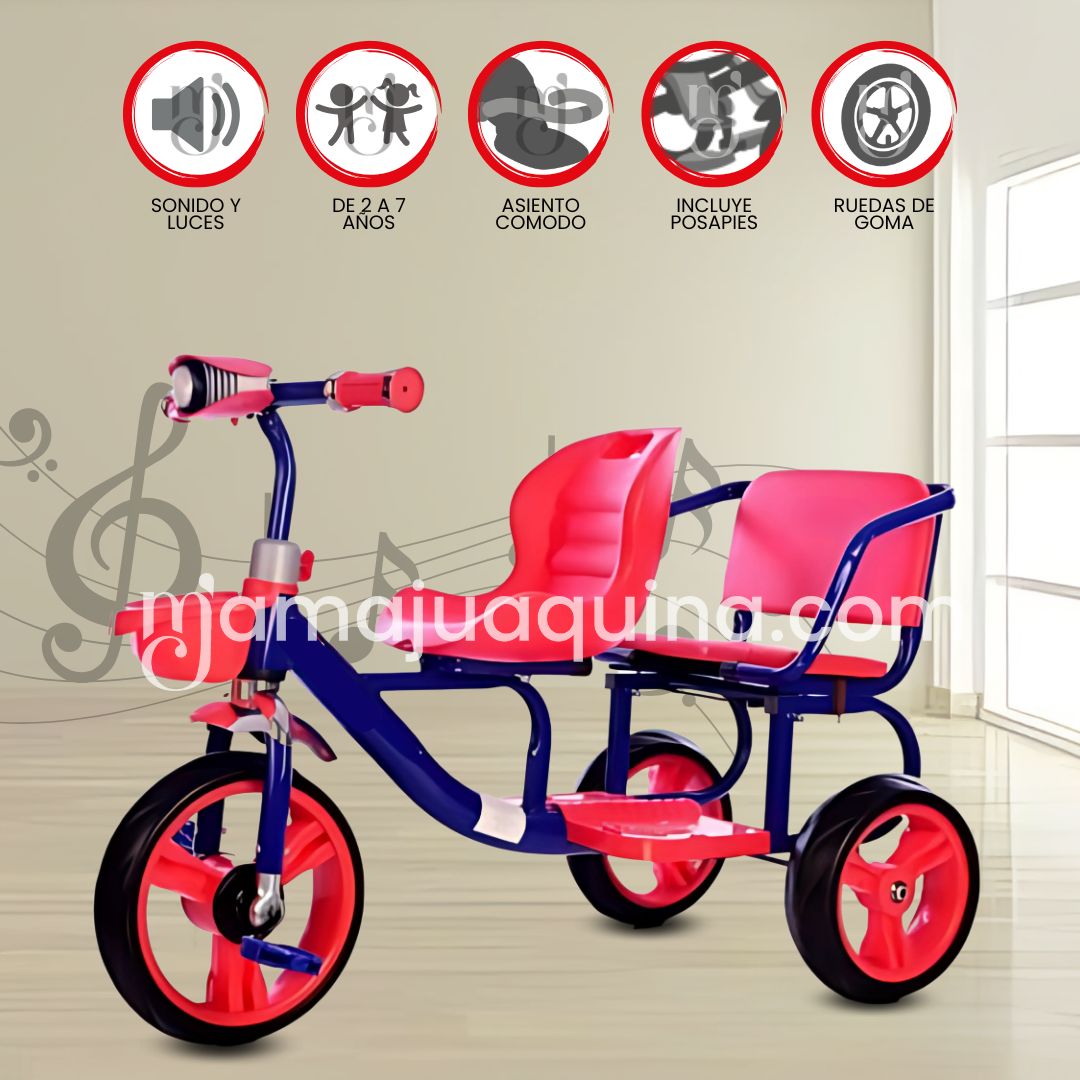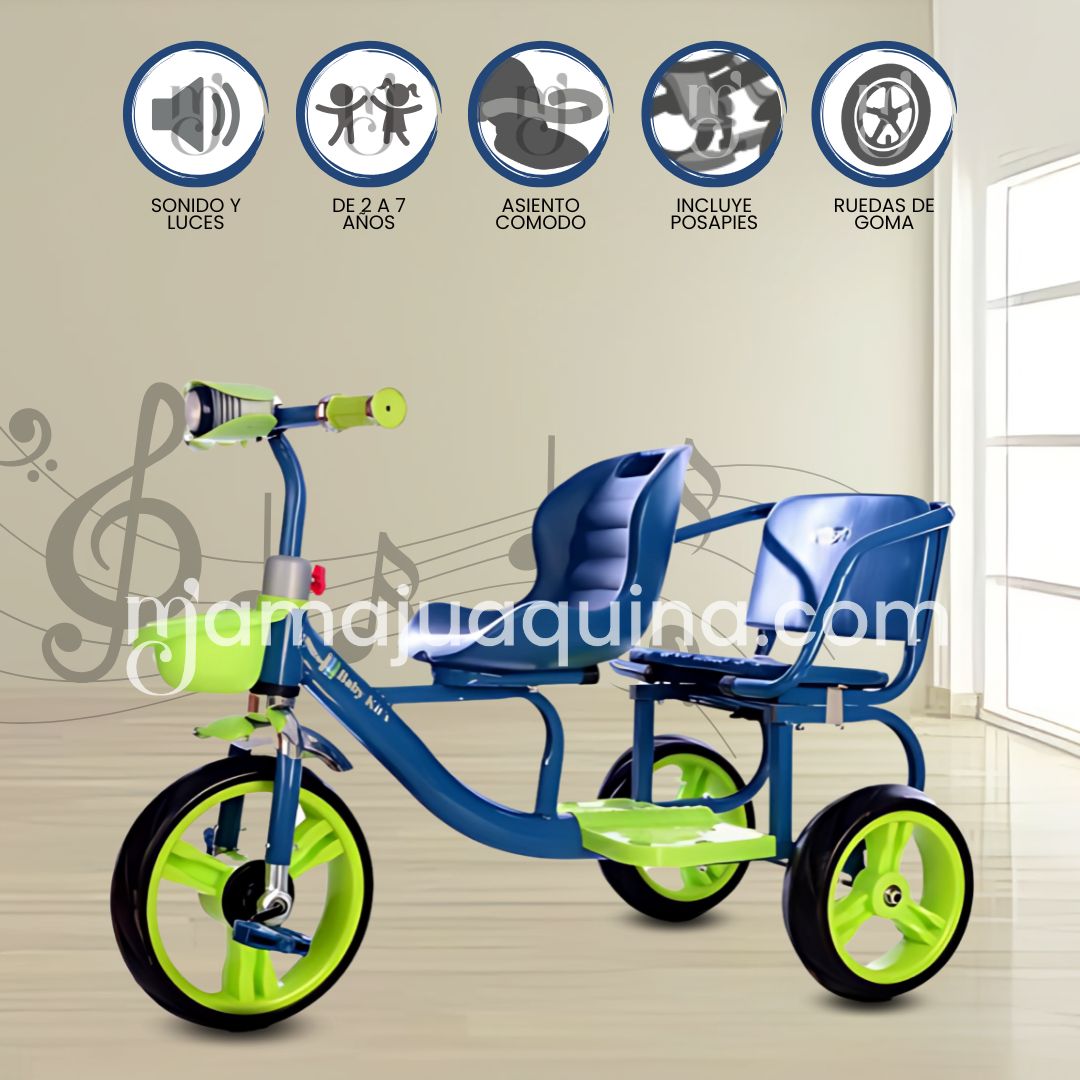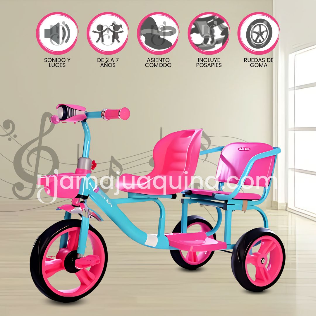 Triciclo Chavito Gemelar Duo Neon – Paseos dobles, diversión por partida doble