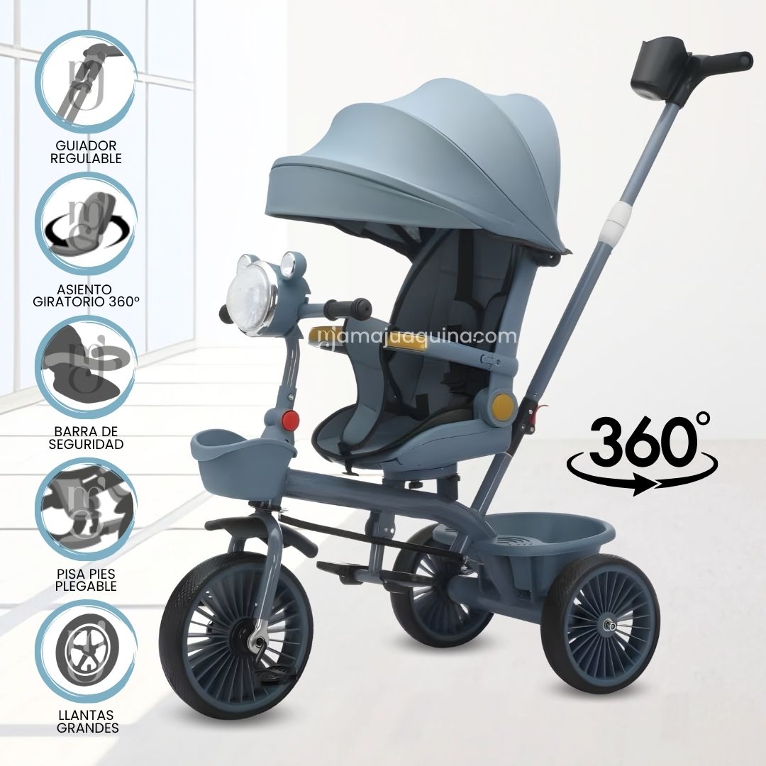 Los primeros paseos sobre ruedas son momentos que quedarán grabados para siempre. Como mamá o papá, deseas que tu hijo disfrute al máximo mientras aprende, se divierte y descubre el mundo de forma segura y cómoda. El Triciclo Guiador Giratorio Scott es la elección perfecta para acompañar cada etapa de crecimiento, ofreciendo confort, estabilidad y protección en cada recorrido. Su diseño moderno y funcional se adapta a las necesidades del niño y a la tranquilidad de los padres.
