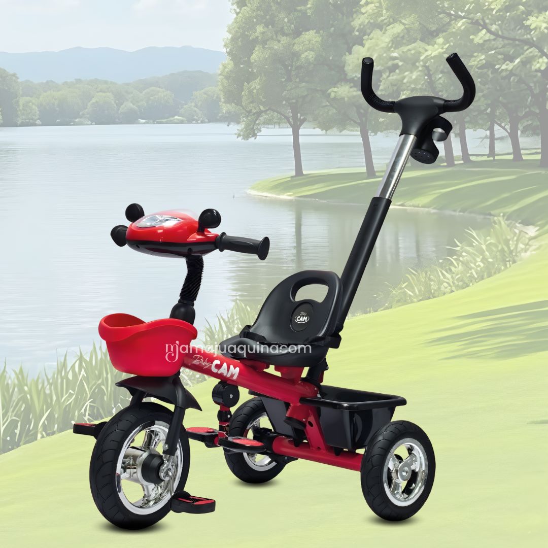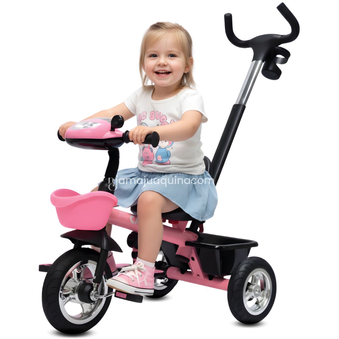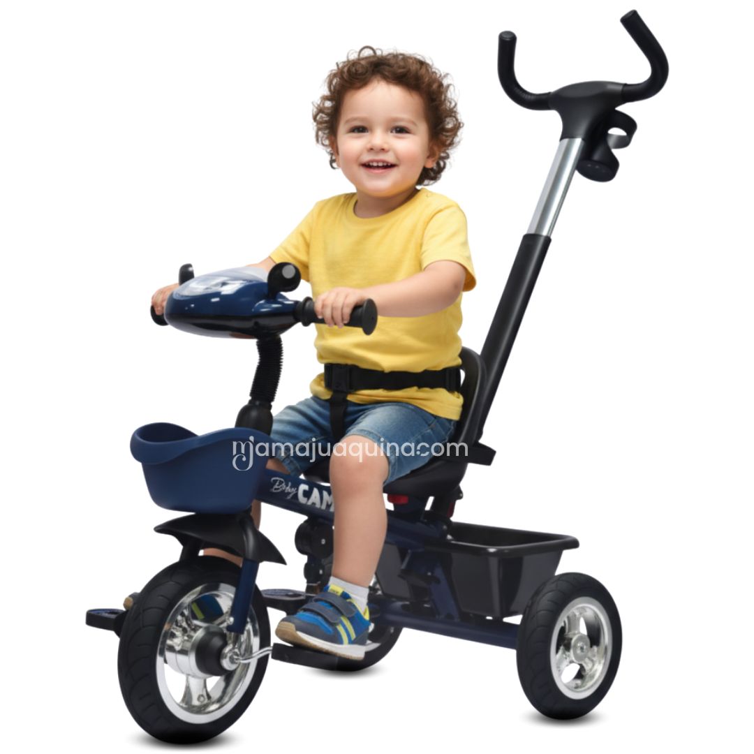 - Estructura ligera y firme: Facilita el manejo del triciclo sin sacrificar estabilidad ni protección para el niño.