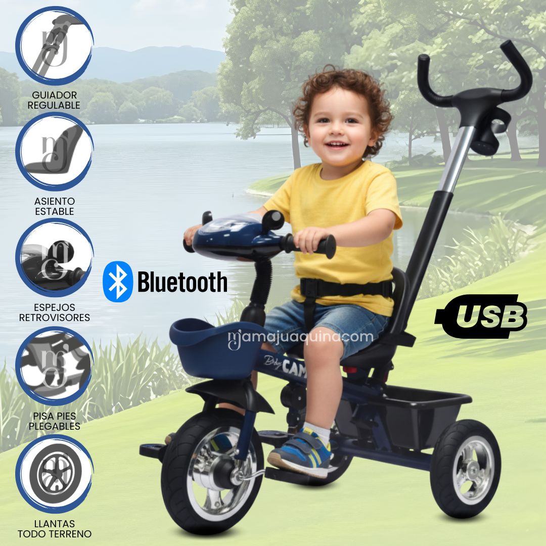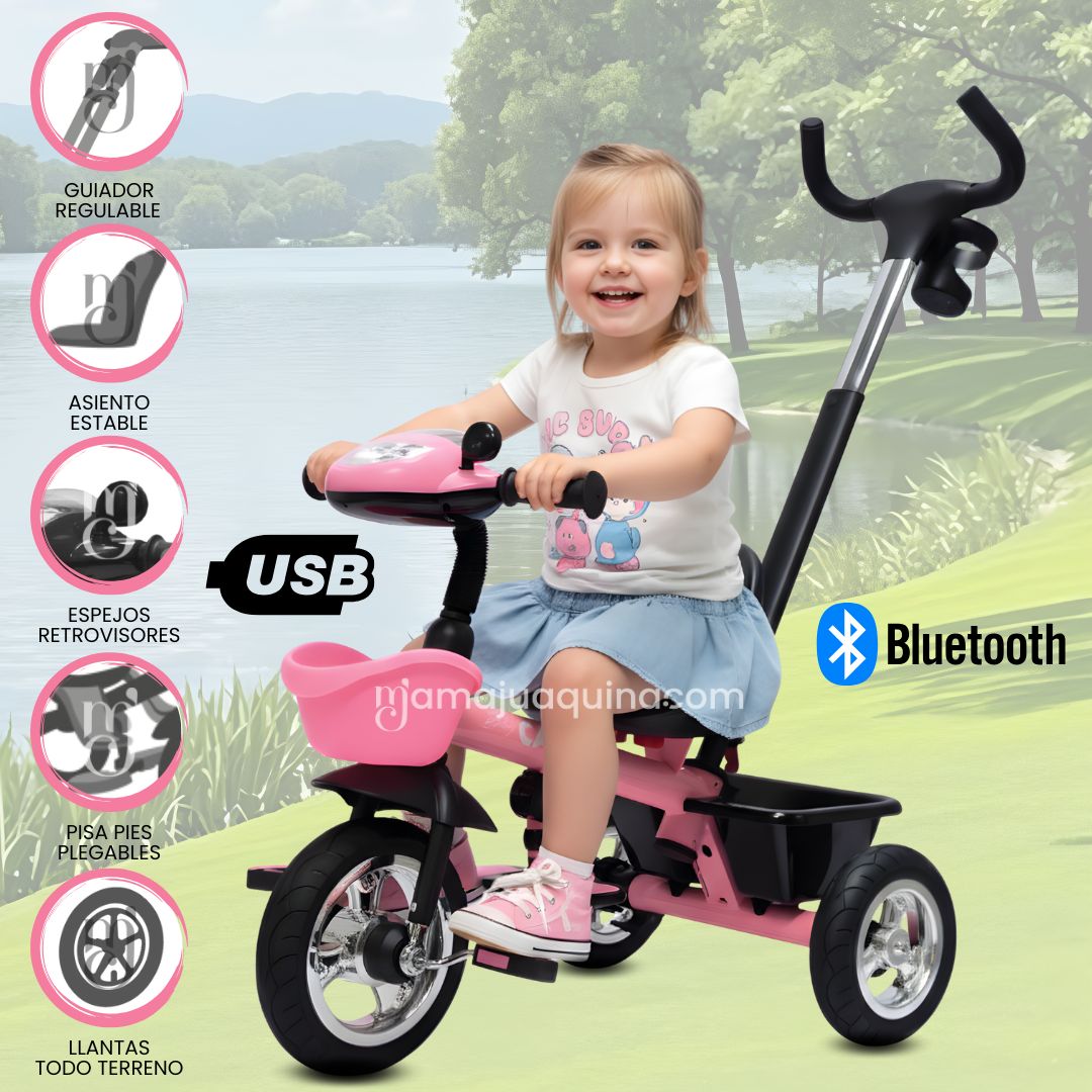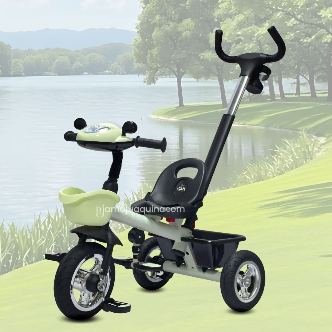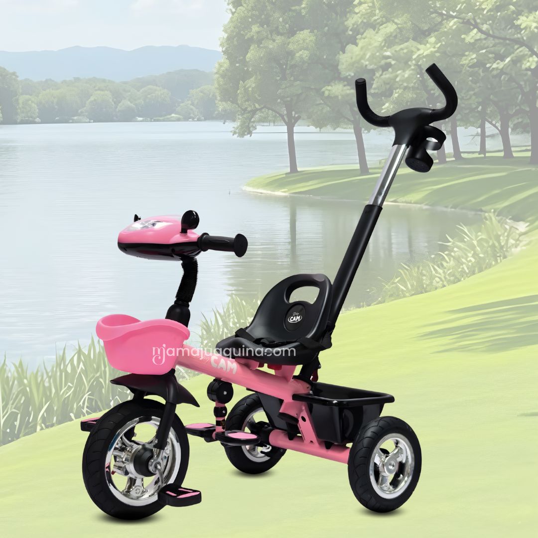 - Estructura ligera y firme: Facilita el manejo del triciclo sin sacrificar estabilidad ni protección para el niño.