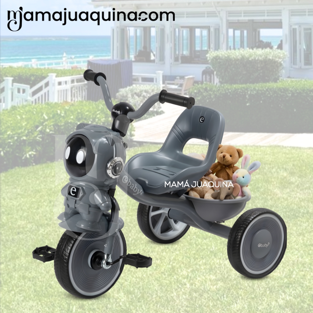 La función de música y sonido estimula los sentidos del niño y hace cada paseo más entretenido. Las luces aportan un toque divertido y llamativo. Su diseño práctico y seguro permite un uso cómodo y confiable. Incluye canastilla, ideal para llevar objetos pequeños durante el paseo. El diseño a pedales ayuda a desarrollar la coordinación y motricidad. Las llantas de EVA brindan un desplazamiento suave y silencioso. Finalmente, es no tóxico, garantizando seguridad en los materiales utilizados.